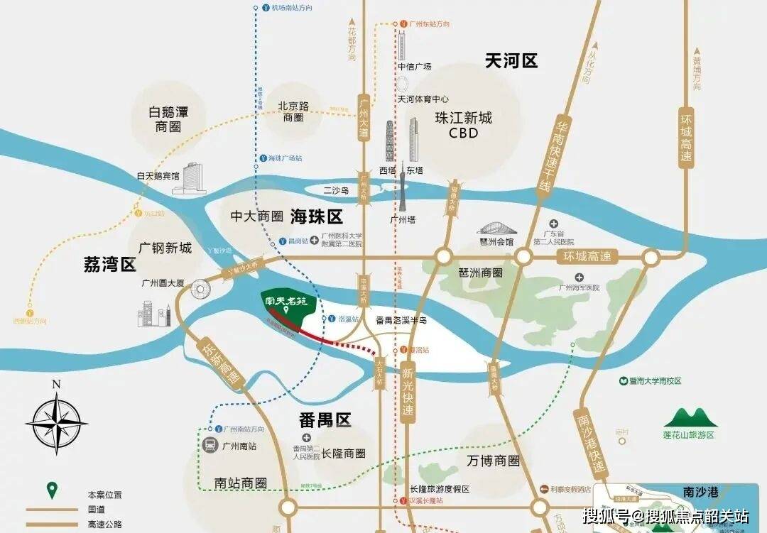 对于高端置业者而言,地段的便利性是衡量生活质量的重要标尺。南天名苑虽然身处静谧岛屿,但在交通路网的构建上却展现出了惊人的效率。项目地处洛溪岛核心位置,依托新光快速路、华南快速干线等城市大动脉,构建了“多维立体”的交通出行体系。自驾出行方面,从南天名苑出发,沿新光快速路向北,仅需约25分钟即可直达珠江新城CBD。这意味着,您在享受岛屿宁静的同时,依然能够轻松掌控广州最核心的商务资源。无论是前往太古汇购物,还是到广州塔赴约,亦或是到珠江新城办公,25分钟的车程都在可接受的舒适范围内,完全打破了传统郊区盘“通勤难”的痛点。